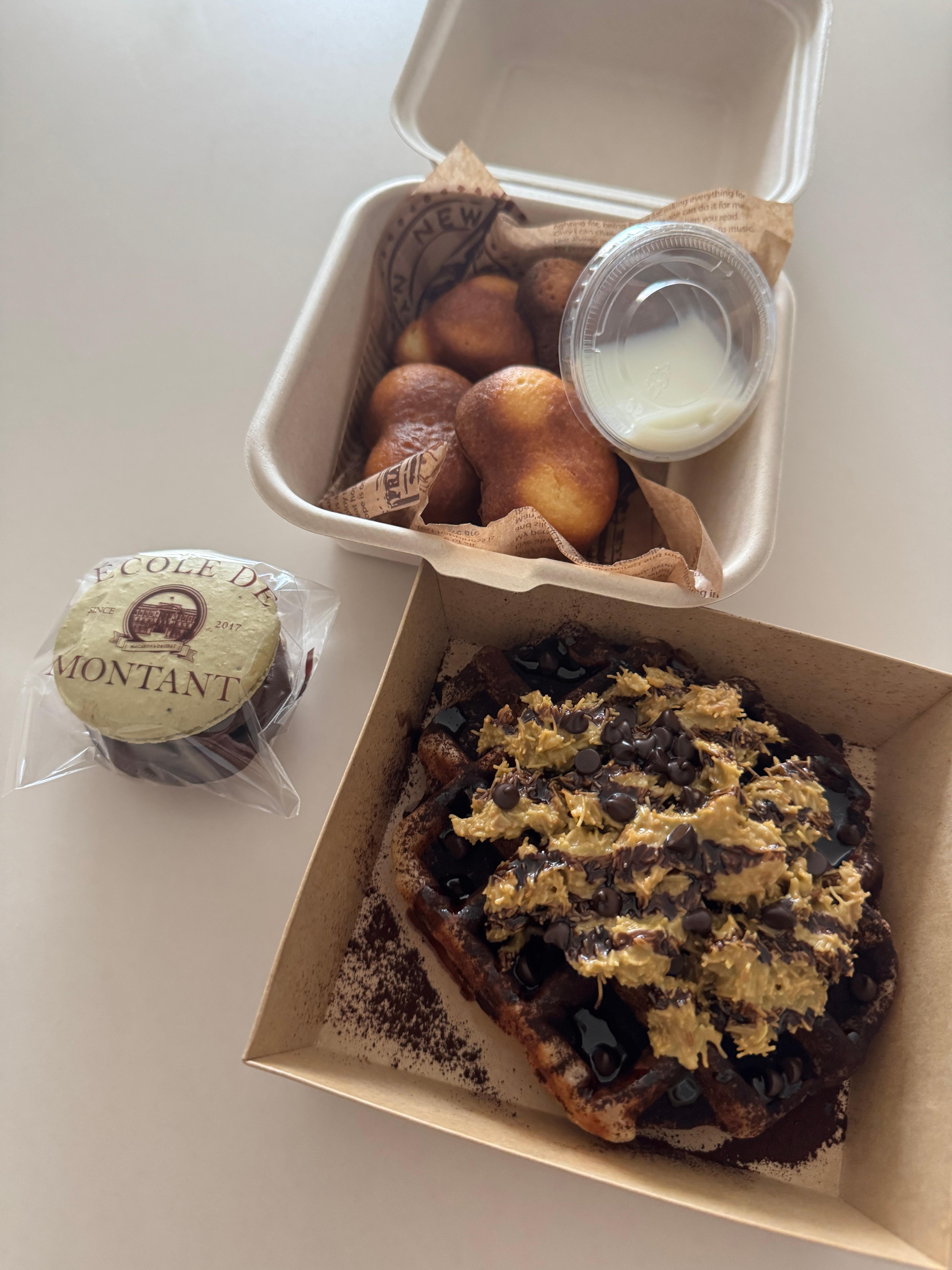 와플 자체의 맛은 만족스러웠고, 혼자 먹기보다는 둘, 셋이서 나눠 먹기에 적당한 양이었습니다.